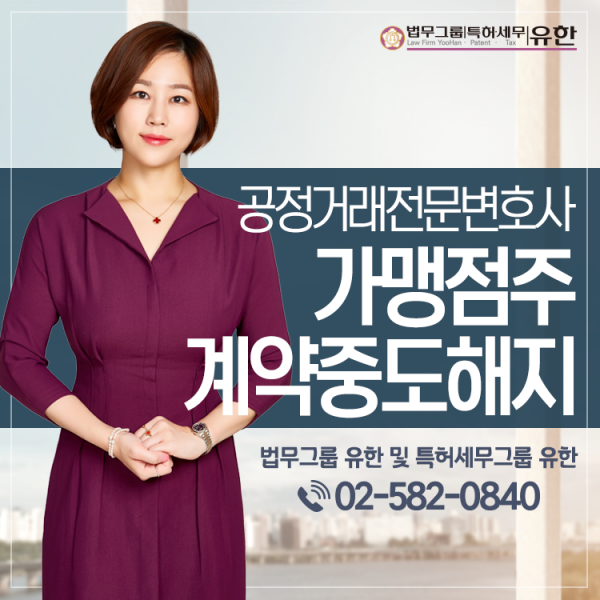 법무그룹 유한의 고은희 대표 변호사는 수백건의 가맹사업 분쟁을 해결해 온 프랜차이즈변호사이자 가맹거래사로 가맹점사업자 분들의 고충을 이해하고 그에 따른 법적대응을 도와드리고 있습니다. 전국에 30여명에 불과한 대한변협인증 공정거래전문변호사로서 가맹본부의가맹사업법 위반 사실을 공정거래위원회에 신고하는 일부터 민사소송 대응까지 전 과정에 걸친 조력을 제공하고 있습니다.