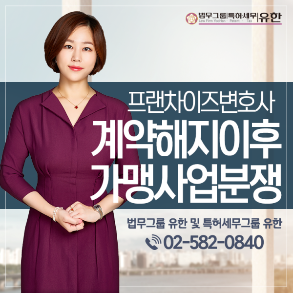 법무그룹 유한의 고은희 대표 변호사는 수백건의 가맹사업 분쟁을 해결해 온 프랜차이즈 변호사이자 가맹거래사이며, 대한변호사협회 인증 공정거래전문변호사로 가맹사업법에 특화된 법률서비스를 제공하고 있습니다. 관련 상담이 필요하신 분들은 법무그룹 유한으로 문의하시기 바랍니다.