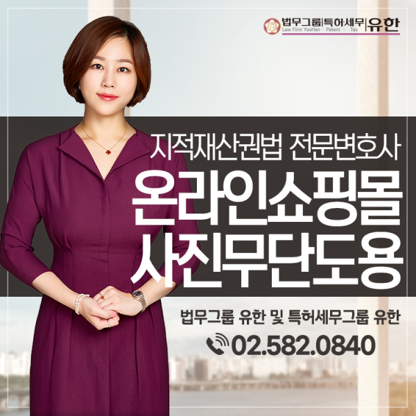 법무그룹 유한의 고은희 대표 변호사는 지적재산권법 전문변호사이자, 지식재산 관련 분쟁을 전담하는 <지식재산센터IP>의 센터장 변호사를 역임하고 있습니다. 의뢰 즉시 지식재산센터 법률팀이 TF팀을 꾸려 대응하고 있으니 상담이 필요하신 분들은 02-582-0840으로 문의하시기 바랍니다.