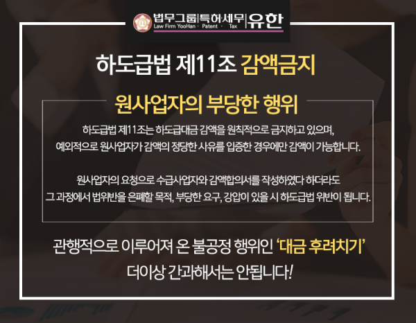 하도급법 단가 인하 소급해 하도급대금 부당감액은 하도급법위반