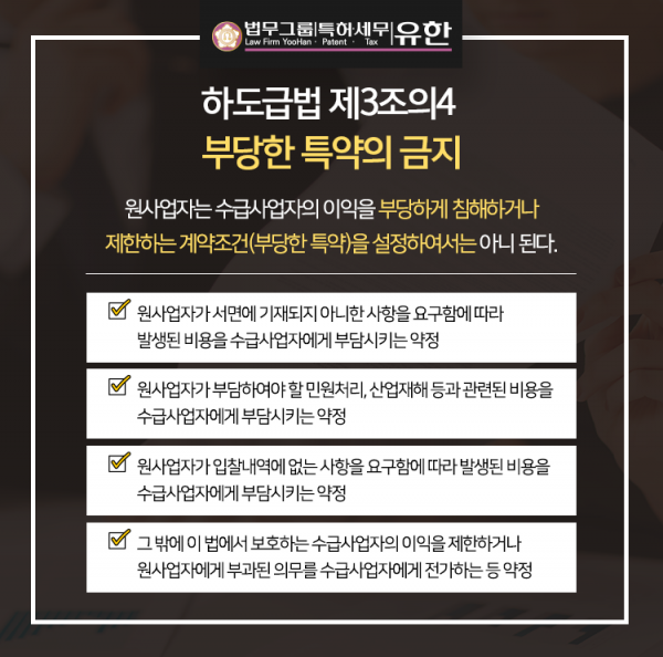 1. 다음 각 목의 어느 하나에 해당하는 비용이나 책임을 수급사업자에게 부담시키는 약정